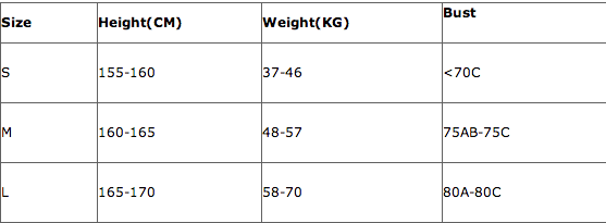 BUST CUP WAIST S: FREE AB <63CM M: FREE BC 66~69CM L: FREE CD 70~76CM