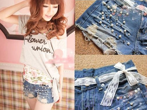 Lacing Denim Shorts
