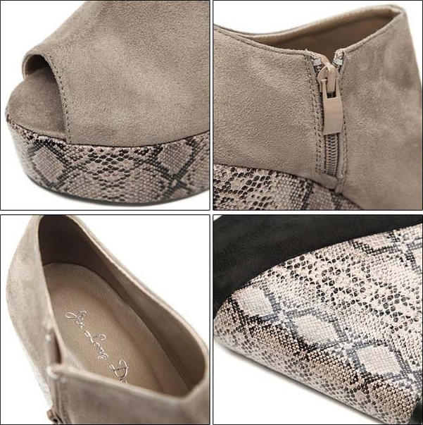 Toe Style: Open Toe Shoe Width: Medium(B,M) Process: Adhesive Closure Type: Slip-On Toe Shape: Round Toe Upper Material: Flock Heel Height: High (3" and up) Style: Fashion