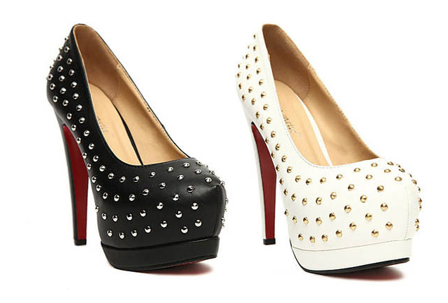 Item Type: Pumps Toe Style: Closed Toe Shoe Width: Medium(B,M) Platform Hight: 5 cm Upper Material: PU Heel Hight: High (3" and up) Decorations: Rivets Outsole Material: Rubber Pump Type: Basic Heel Type: Platforms heel height: 13cm