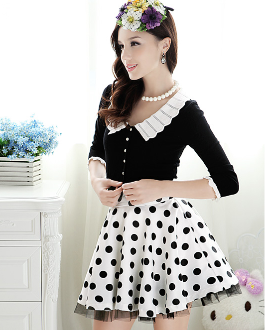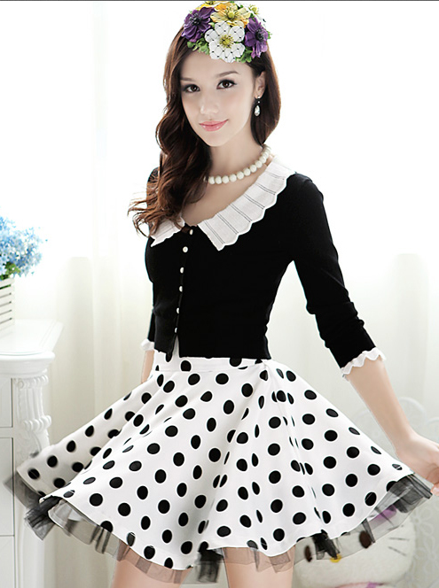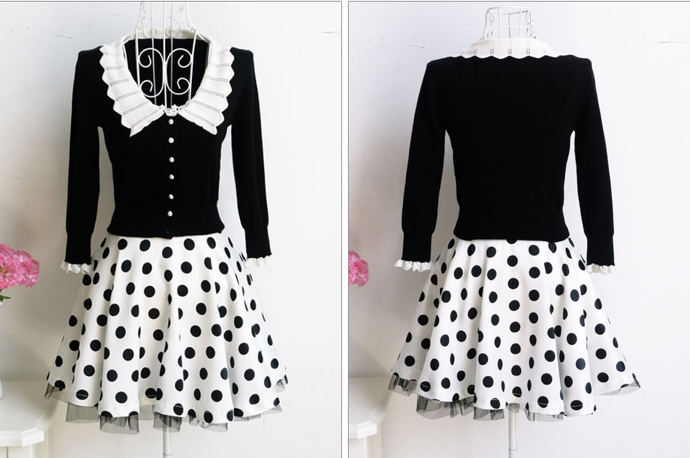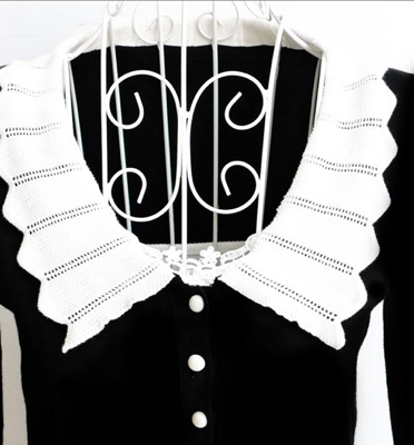 Black White Peter Pan Collar Cardigan