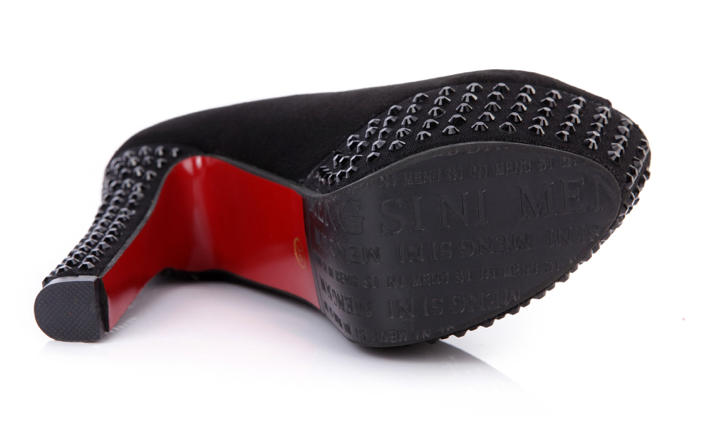 Black Rhinestone Thick Heels
